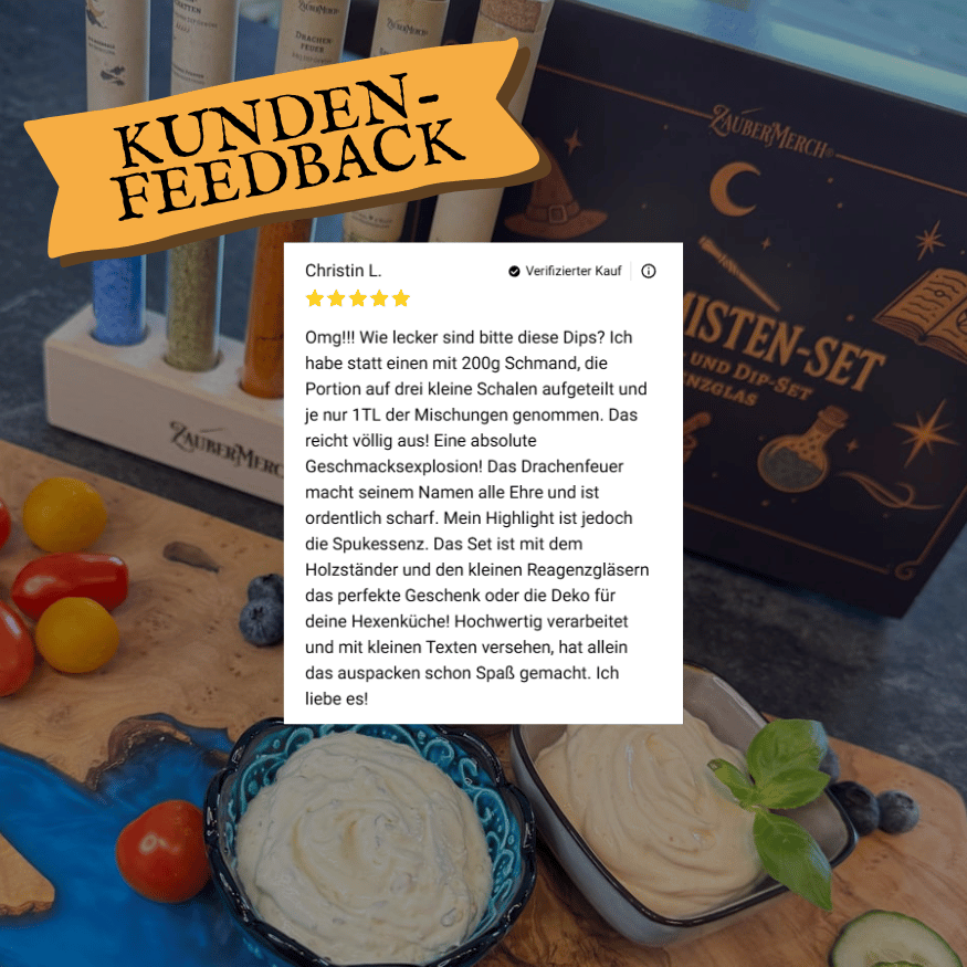 Unsere Zaubertrank-Teemischungen sind mehr als nur Tee – sie sind kleine Rituale für Körper, Geist und Seele. Jeder Tee wird in Deutschland von Hand in kleinen Chargen abgefüllt, mit größter Sorgfalt komponiert und liebevoll verpackt. Wir legen Wert auf hochwertige Zutaten, stimmige Aromakonzepte und magische Details, die jede Tasse zu einem Erlebnis machen. Ob als wärmender Begleiter im Herbst und Winter oder erfrischender Eistee im Sommer – unsere magischen Tees passen sich deinen Jahreszeiten an. Viele Sorten wie die Glückstrank-Mischung, der Butterscotch Brew oder die Basilisken-Mixtur lassen sich sowohl heiß als auch kalt genießen. Unsere Themensets wie das Zaubertrank-Probierset, saisonale Editionen, oder limitierte Sondermischungen zu Halloween, Walpurgisnacht oder Weihnachten laden zum Ausprobieren und Verschenken ein. Besonders beliebt bei Fantasy-Fans, Bücherwürmern, gemütlichen Hexen, Zauberern und Teeliebhabern, die ihre Me-Time mit Magie veredeln wollen. ZauberMerch Tee bedeutet: handabgefüllt in Deutschland, limitiert & saisonal abgestimmt, thematisch passend zu Jahreskreisfesten, Booktok-Momenten & Cozy-Zeit, liebevolle Rezepturen mit magischer Note, perfekt als Geschenk oder für deine persönliche Alltagszauberei. Egal, ob du magische Energie tanken oder einfach einen Moment der Ruhe genießen willst – unsere Teemischungen helfen dir dabei, deine ganz eigene Magie zu finden.