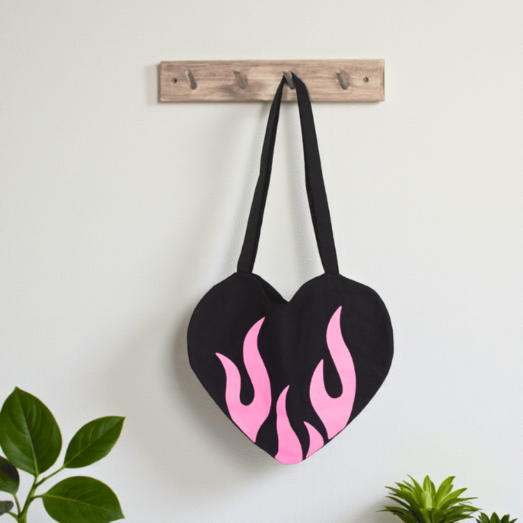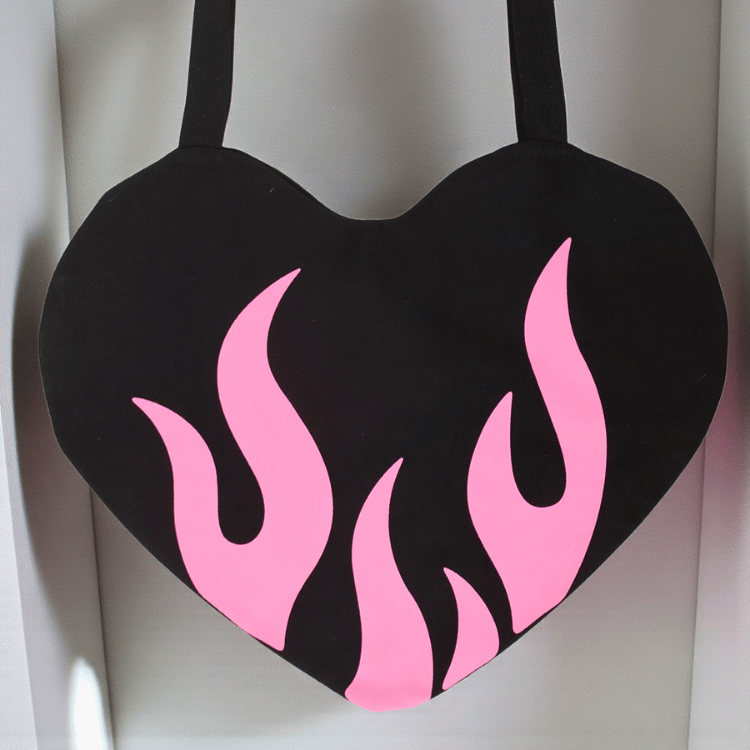 Dieser Stoffbeutel mit brennendem Herzmotiv ist eine leichte Satin-Tragetasche für Alltag, Freizeit und besondere Momente. Das ausdrucksstarke Herz-Design verleiht der Tasche eine emotionale, leicht mystische Note und macht sie zu einem echten Blickfang.