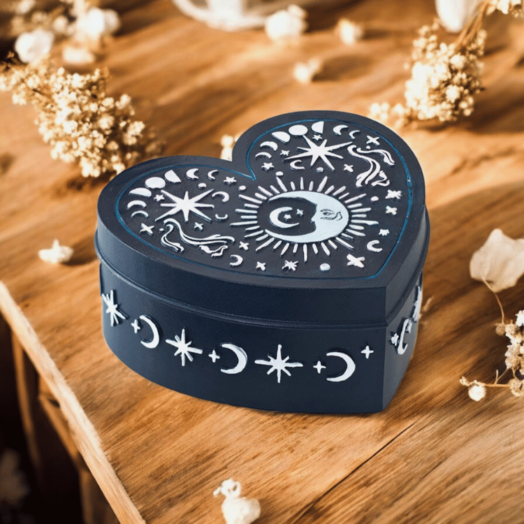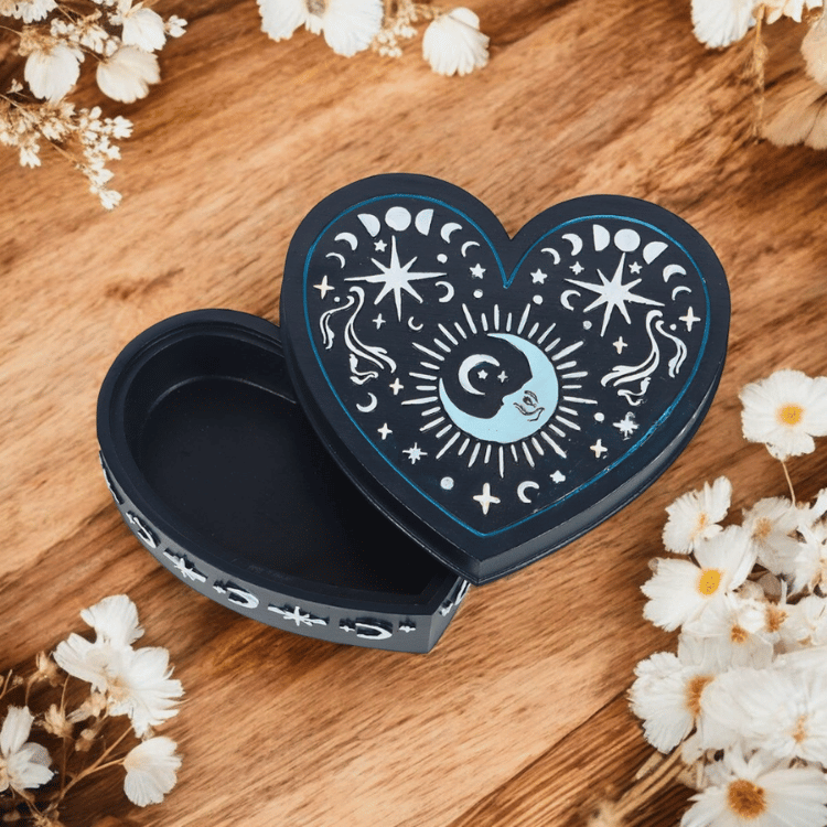 Herzförmige Schmuckdose mit Mondmotiv – Aufbewahrungsdose