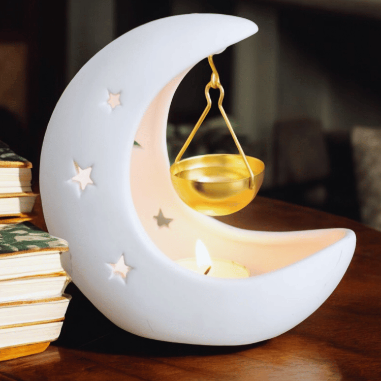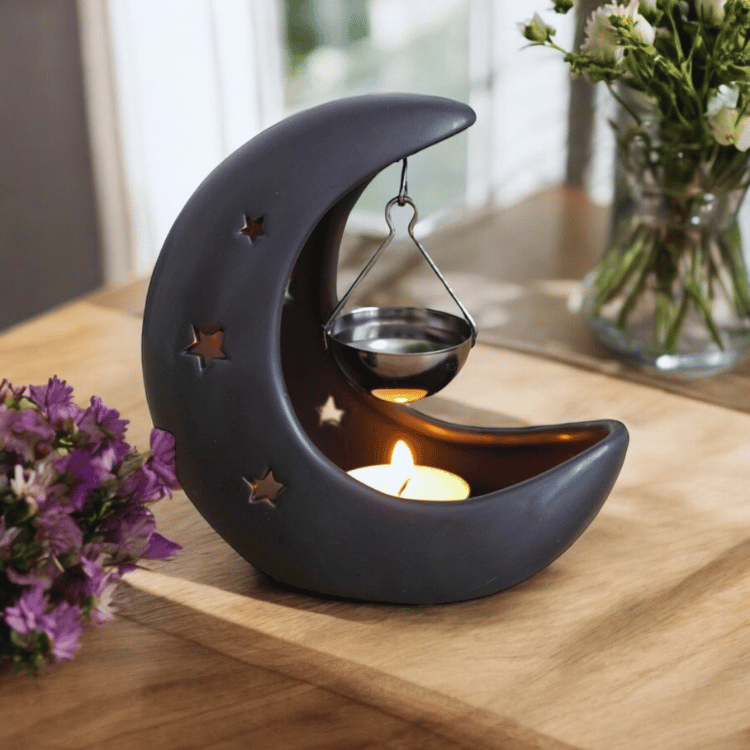 Diese hängende Mond-Duftlampe kombiniert mystisches Design mit wohltuender Funktionalität. Mit ihrer eleganten schwarzen Halbmond-Optik und der schwebenden Position ist sie ein echter Hingucker in jedem Raum. Perfekt, um deine liebsten Duftöle oder Waxmelts stilvoll zu genießen und gleichzeitig eine magische Atmosphäre zu schaffen.