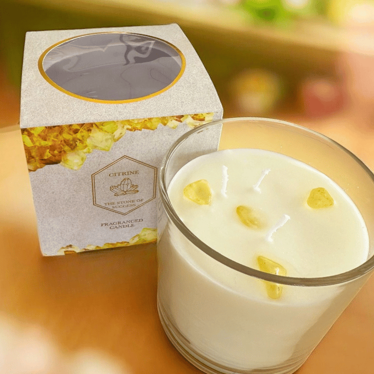 Floral, lebendig, leicht – wie ein Tag im Grünen. Der Citrin sorgt dabei optisch für sonnige Vibes und macht die Kerze zu einem dekorativen Hingucker.