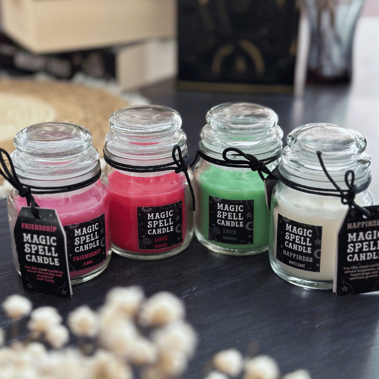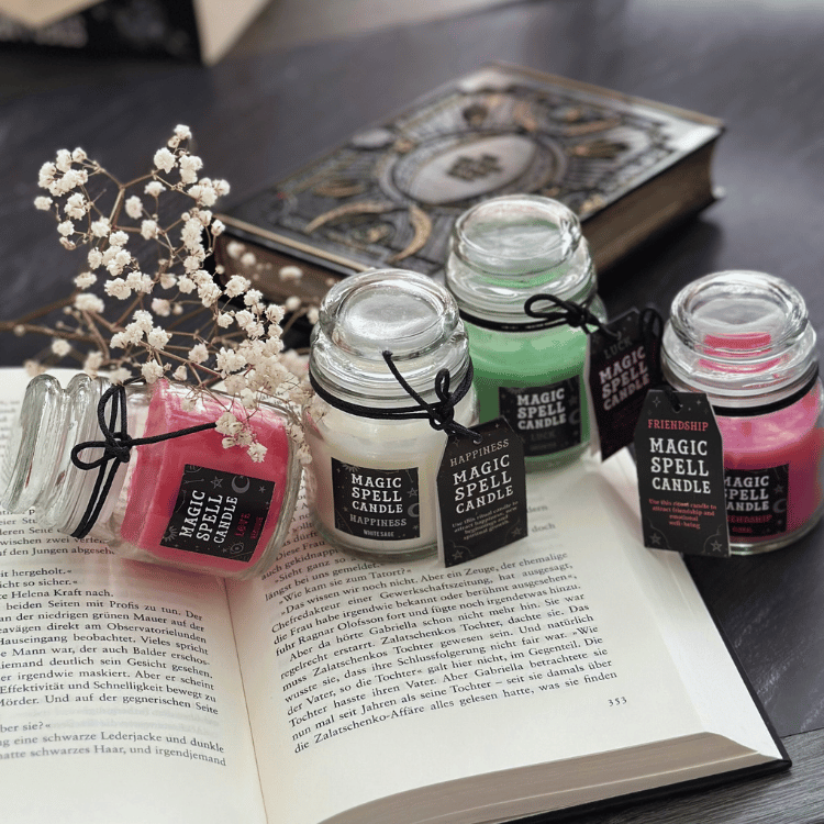 Verwandle dein Zuhause in eine Oase der Magie mit dem Zauberkerzen Vierer-Set – ideal für alle, die an Manifestation, Magie und Hexerei glauben und ihre Träume aktiv gestalten wollen.