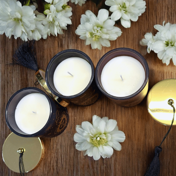 - Inhalt: Auswahl aus 1 oder direkt allen 3 Duftkerzen im Glas mit Deckel & Quaste