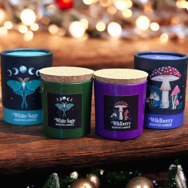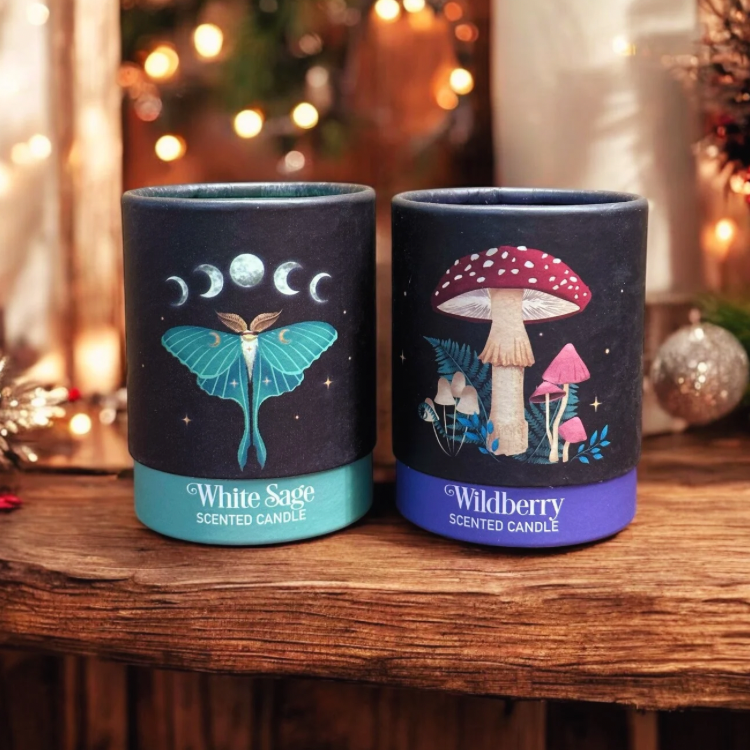 Zauberhaftes Kerzen-Set: Waldpilz-Wildbeere & Luna-Motte mit Weißem Salbei