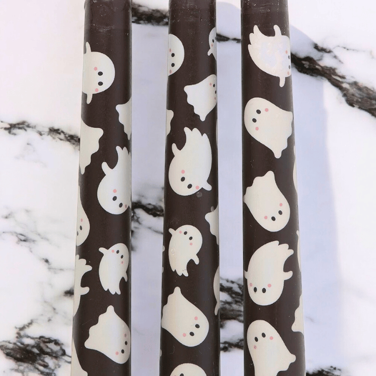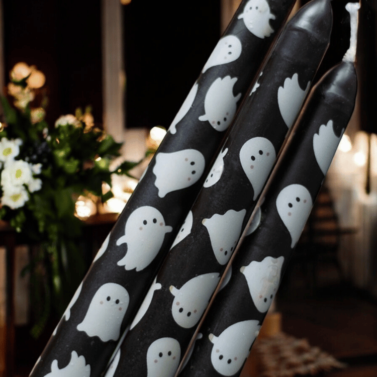 - Einzigartiges Design: Die Kombination aus tiefschwarzem Wachs und den freundlichen Geister-Motiven macht diese Kerzen zu einem echten Hingucker.