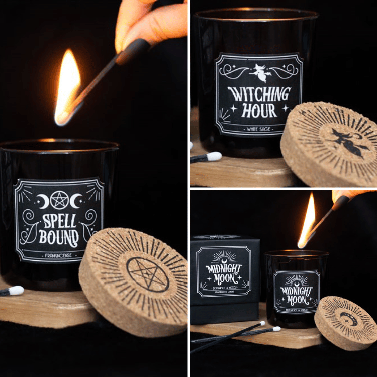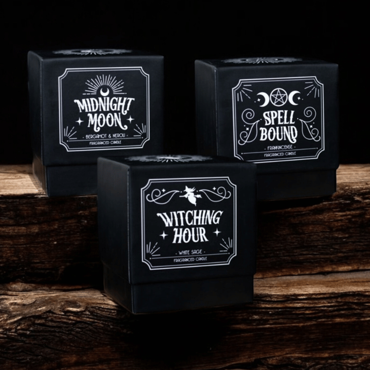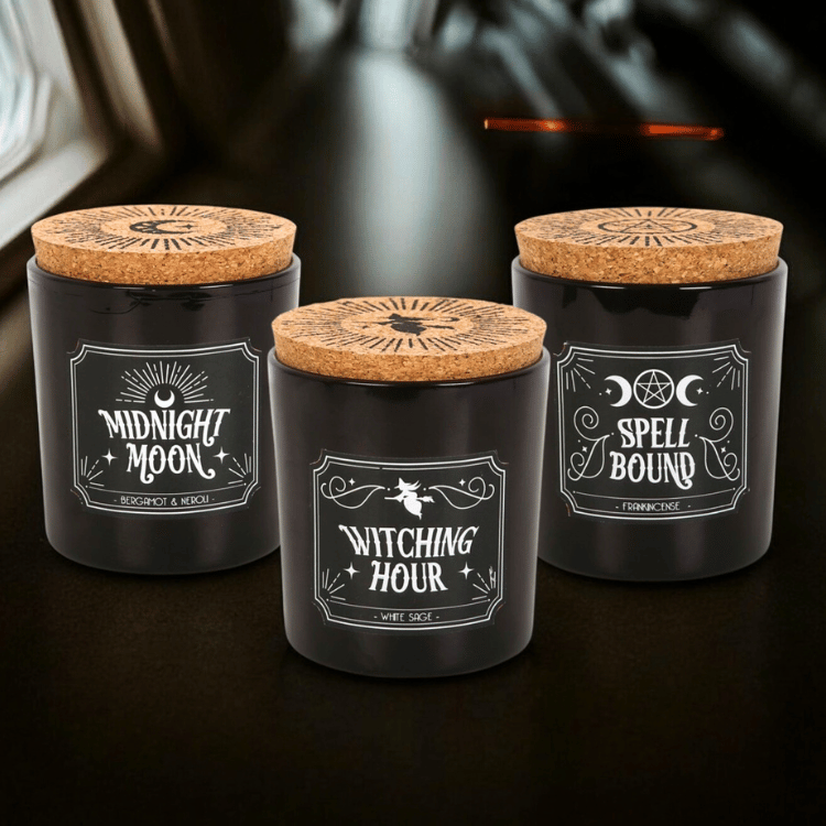 Schaffe eine mystische Atmosphäre in deinem Zuhause mit diesem schwarzen Kerzen-Set, das perfekt für alle Hexen, Fantasy-Fans und Liebhaber von Düften ist, die eine magische Stimmung verbreiten. Dieses Set enthält drei einzigartige Duftkerzen, jede davon in einem eleganten, schwarzen Glas und mit einem unverwechselbaren Duft, der deine Sinne verzaubern wird.