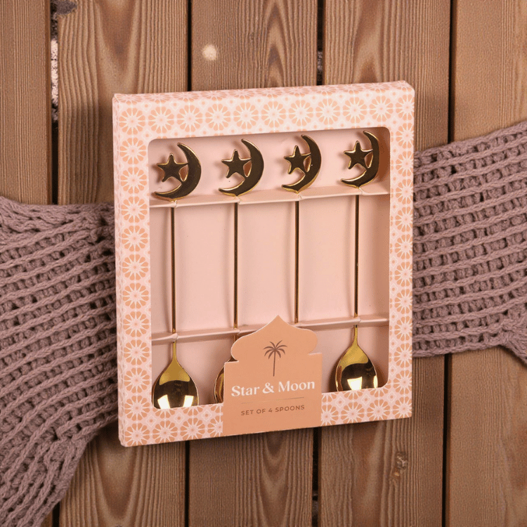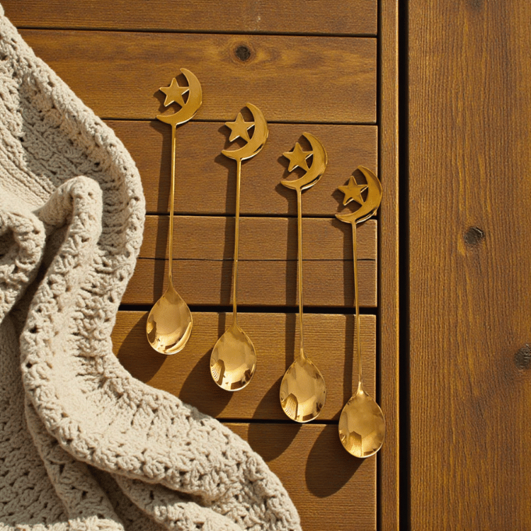 Dieses 4er Set Teelöffel mit Stern- und Mondmotiv verbindet Alltagstauglichkeit mit einer dezenten, mystischen Symbolik. Jeder Löffel ist mit einem Stern- oder Mondmotiv gestaltet und eignet sich ideal für Tee, Kaffee oder Desserts.