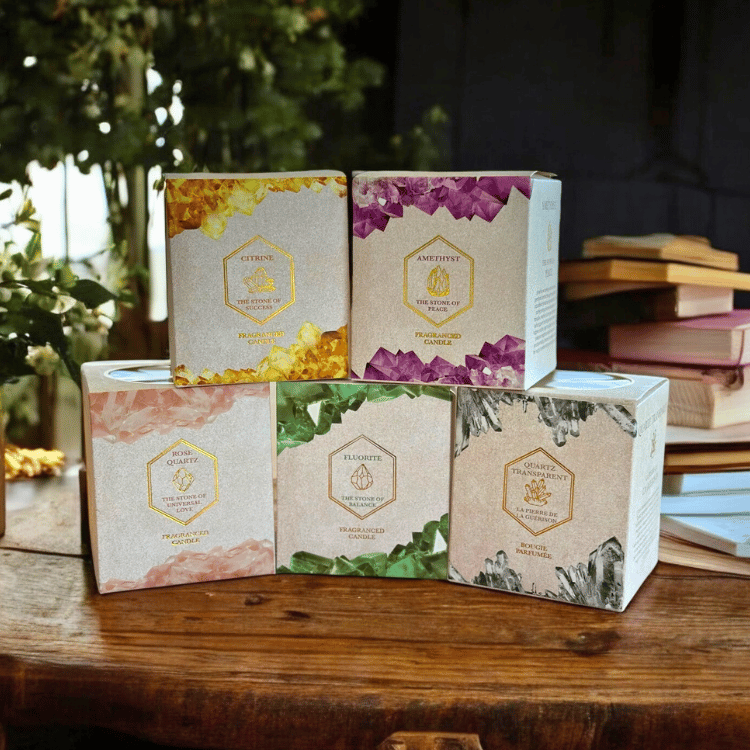 Jede Kerze enthält Kristallsteine, sorgfältig eingebettet in hochwertigen Wachs. Beim Schmelzen offenbart sich nicht nur ihr Duft – sondern auch ein kleiner Moment zum Innehalten.