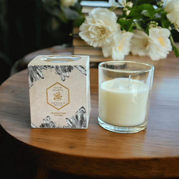 Kerzenlicht, das flackert wie Gedanken in der Nacht. Ein zarter Duft, der sich in deinem Raum ausbreitet und dich kurz durchatmen lässt. Die Kristalllicht Duftkerzen vereinen wohlriechendes Wachs mit der Schönheit von Kristallen – für kleine Rituale, große Gedanken oder einfach nur gemütliche Stunden mit dir selbst.