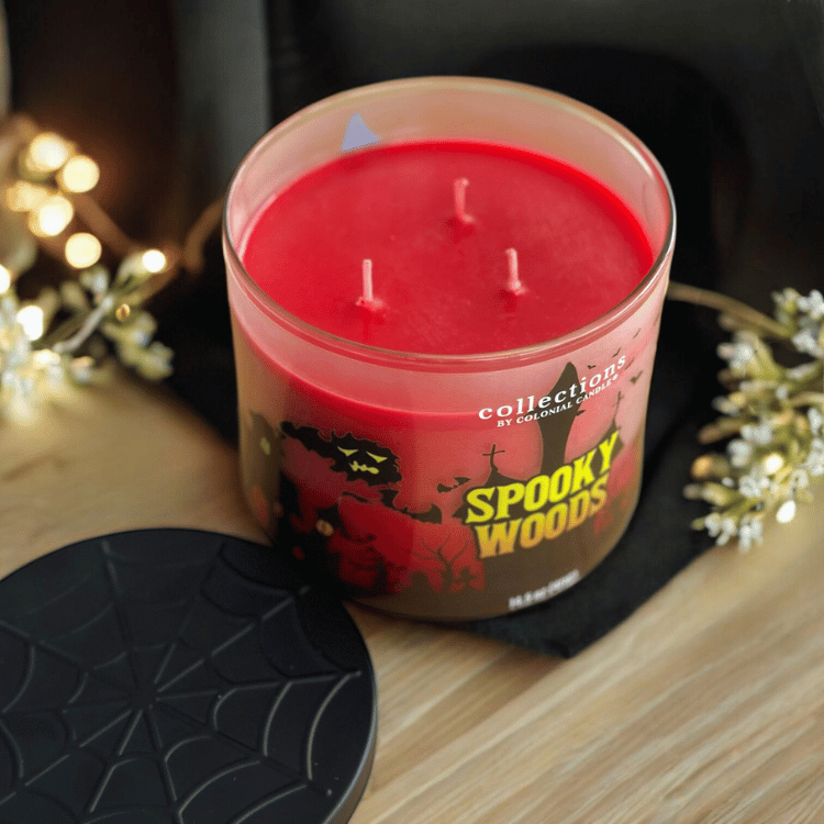 Der Duft von Spooky Woods erinnert an ein Lagerfeuer mitten im verfluchten Wald: Rauch, Marshmallows, rote Beeren und würziger Zucker treffen auf Sandelholz und Kiefernnadeln.