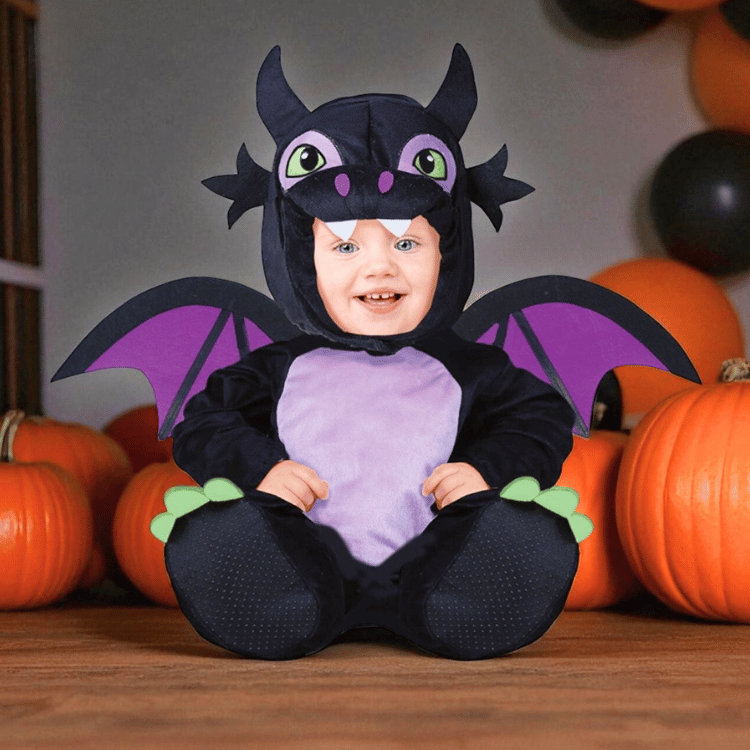 Ein echter Hingucker für Halloween, Karneval und fantasievolle Verkleidungen: Dieses schwarze Drachenkostüm für Babys und Kleinkinder verwandelt die Kleinsten in einen kleinen, mystischen Drachen. Mit detailreicher Kapuze, leuchtenden Augen, kleinen Hörnern, ausgebreiteten Flügeln und einem geschwungenen Schwanz entsteht ein fantasievoller Look, der die Magie von Herbstfesten und Halloween lebendig werden lässt. Ein bequemes Einteiler-Kostüm, das mit weichem Material für angenehmes Tragen sorgt und gleichzeitig unvergessliche Erinnerungen schafft.