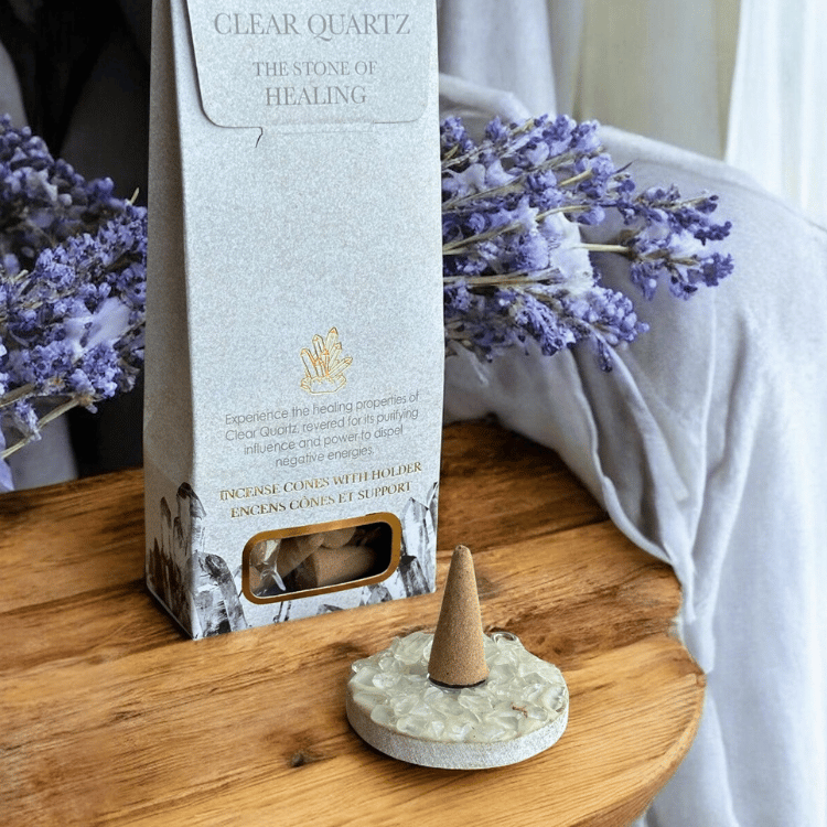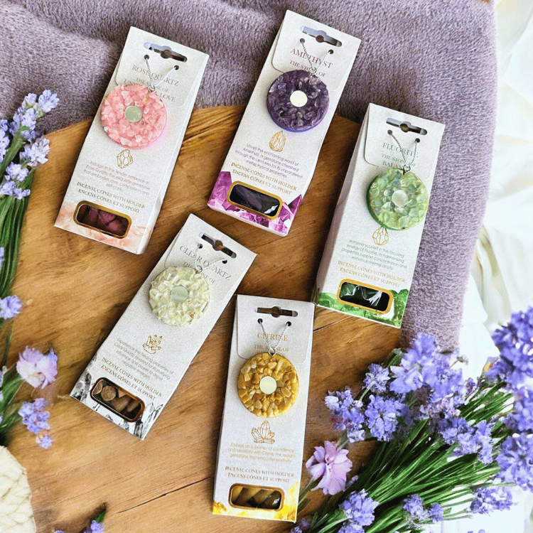 Jede Packung enthält 40 Räucherkegel (jeweils in einer Duftvariante), ergänzt durch einen passenden Halter aus Mangoholz mit funkelndem Kristallakzent – perfekt auf den jeweiligen Duft abgestimmt. Ob du dich nach frischer Wäsche, blumiger Leichtigkeit oder erdiger Tiefe sehnst: Hier findest du deinen Favoriten.