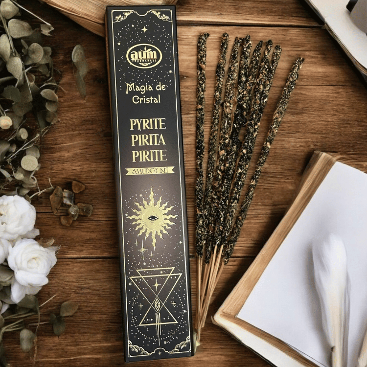 Mit seinem leicht erdigen, würzigen Duft verbreitet das Pyrit-Räucherstäbchen eine angenehme, warme Atmosphäre. Pyrit wird oft mit Tatkraft und Energie assoziiert – ideal für kreative Projekte oder einen Motivationsschub. Die kleinen Pyrit-Steine in der Packung sollen daran erinnern, mutig und selbstbewusst durchs Leben zu gehen.