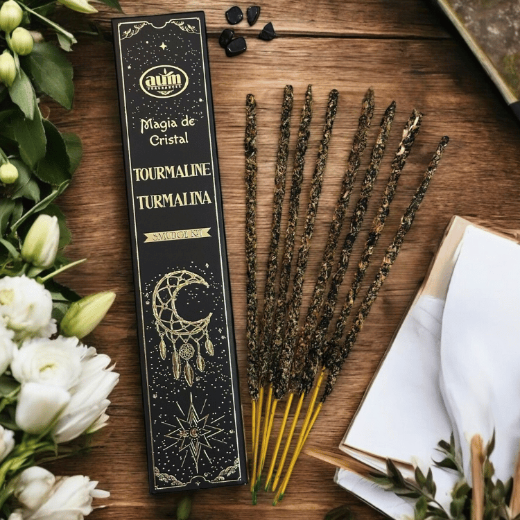 Turmalin-Räucherstäbchen verströmen einen kräftigen, leicht harzigen Duft, der die Luft erfrischt. Der Turmalinstein steht sinnbildlich für Schutz und positive Energie – perfekt, um nach einem langen Tag abzuschalten.