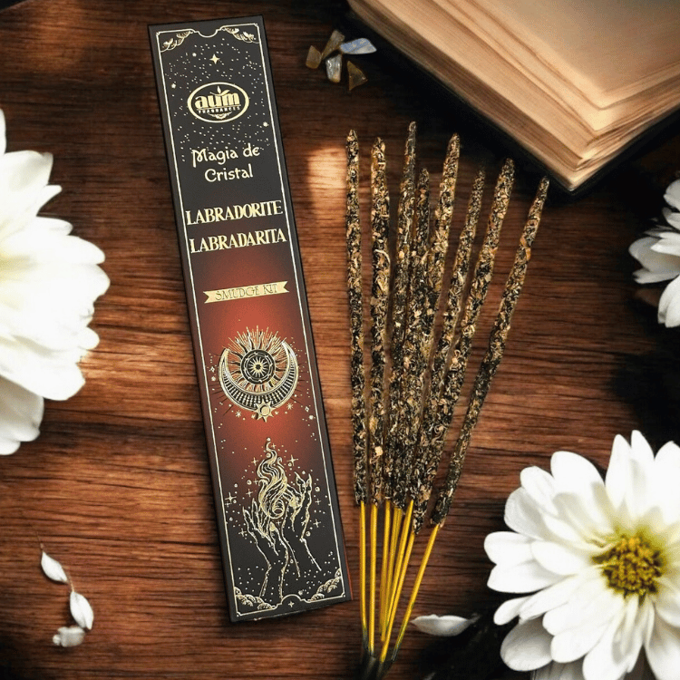 Labradorit wird mit Transformation und Kreativität assoziiert. Der Duft dieser Räucherstäbchen ist frisch, leicht holzig und belebend – ideal, um neue Energie zu tanken. Die Labradorit-Steinchen steht für Inspiration und die Kraft, Veränderungen anzunehmen.