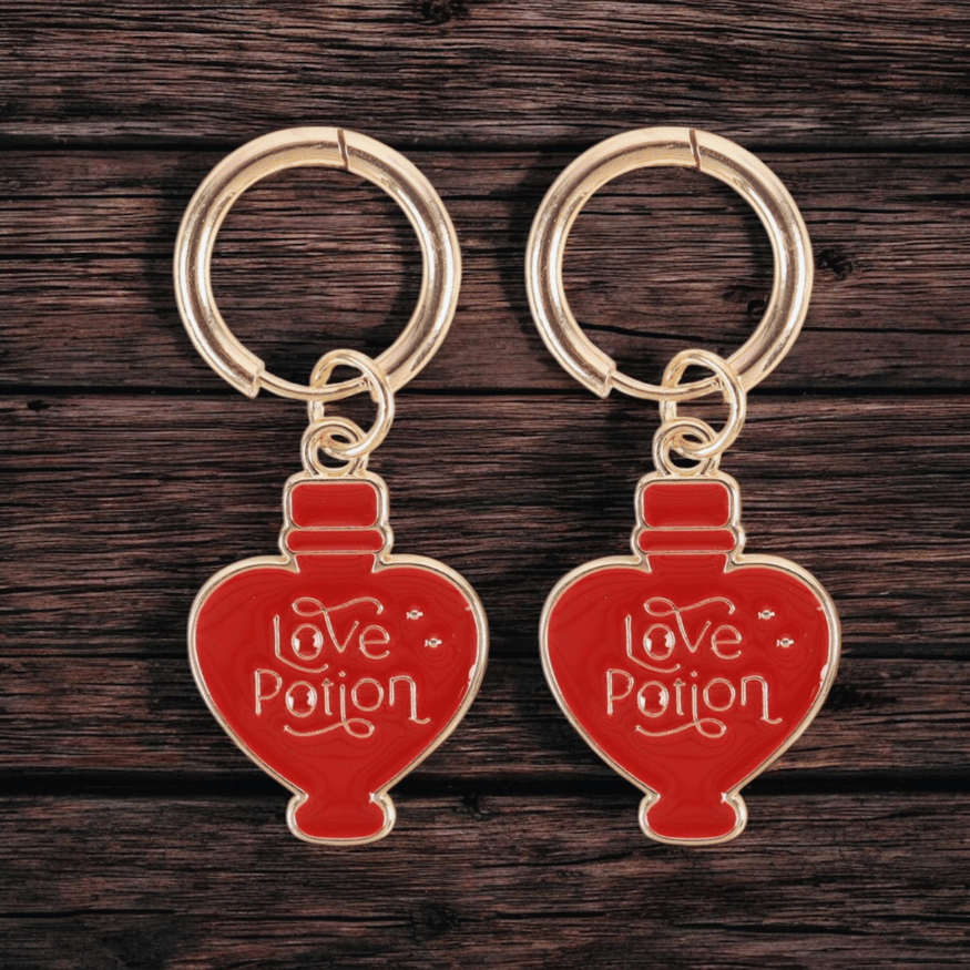 - Design: Hängende Ohrringe in Form von Liebestrankfläschchen.