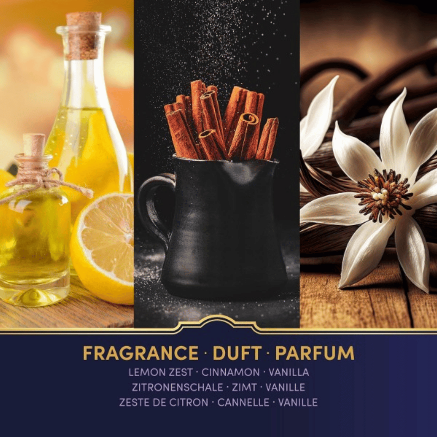 Die Gryffindor Duftkerze erfüllt den Raum mit einer warmen Komposition aus Zitrone, Zimt und Vanille – ein Duft, der Behaglichkeit und Energie zugleich schenkt. Das Design orientiert sich am Gryffindor-Hauspokal und vereint tiefes Schwarz mit dem ikonischen roten Wappen.