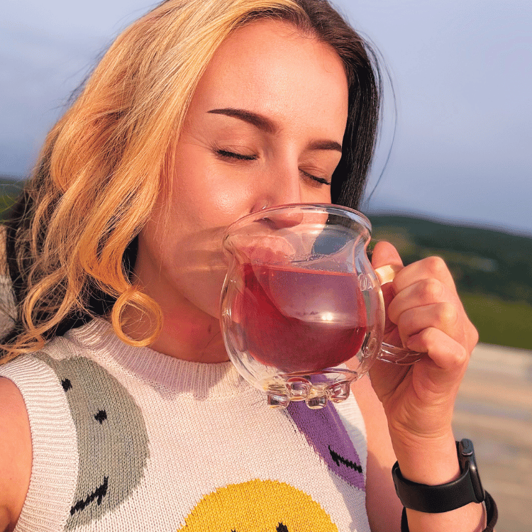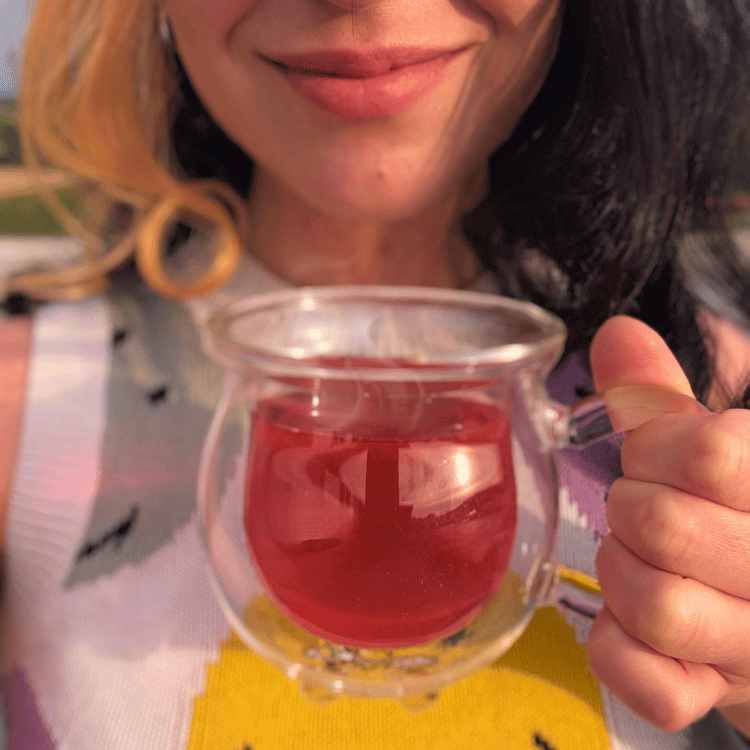 1 Teelöffel in ein Teesieb geben, mit ca. 200 ml heißem Wasser (100 °C) aufgießen und 8–12 Minuten ziehen lassen. Je länger, desto intensiver. Genau dein Ding, wenn du es dramatisch lecker magst.