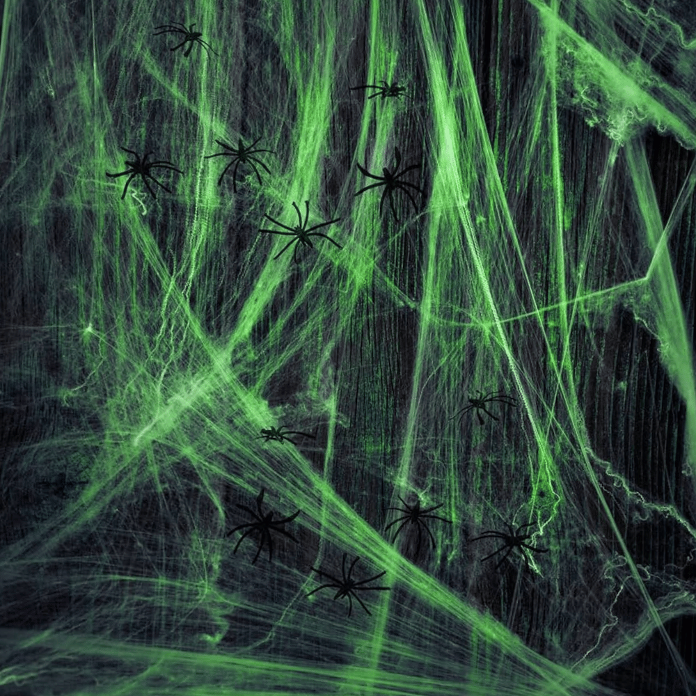 Das Netz ist besonders leicht auseinanderzuziehen, wodurch sich täuschend echte 3D-Spinnennetz-Strukturen zaubern lassen. Im Dunkeln entfaltet es dann seinen vollen Effekt: Das Netz leuchtet in der Nacht und sorgt für Gänsehaut-Atmosphäre – perfekt für jede Halloween-Party, Horror-Nacht oder dein eigenes Spukhaus.