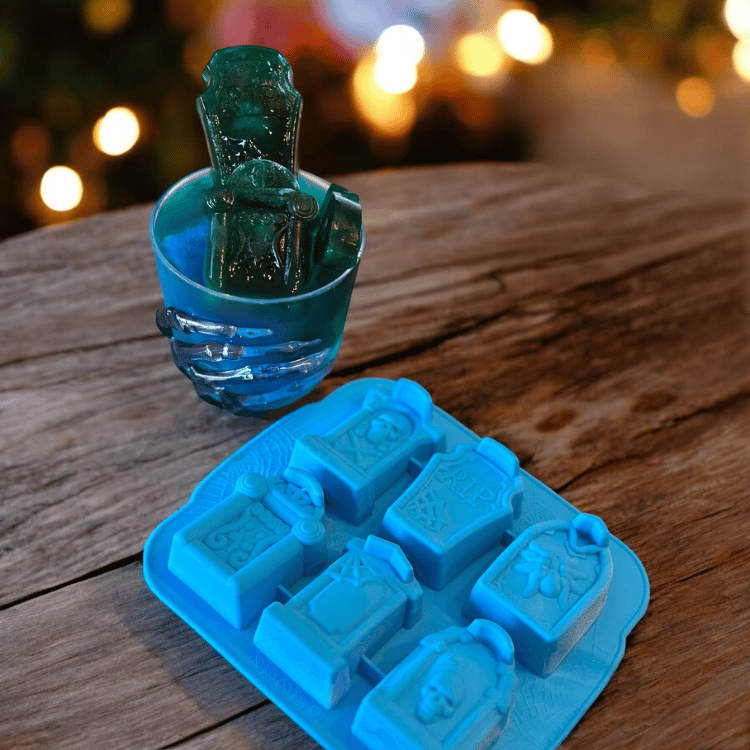 Blaue Grabsteinform – perfekt für schaurige kleine Küchlein, Brownies oder schmelzende Grabstein-Eiswürfel