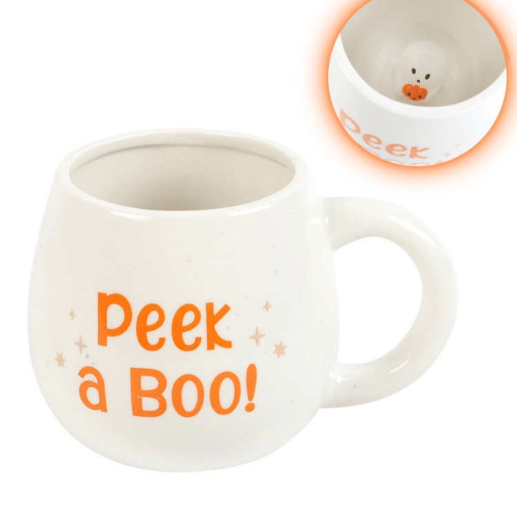 Diese kugelige Keramiktasse sieht auf den ersten Blick ganz harmlos aus – aber sobald du sie anhebst, zeigt sich der kleine Geist am Boden: Boo! Perfekt für alle, die ihren Kakao mit einem Augenzwinkern und einer Prise Gruselfaktor genießen wollen.