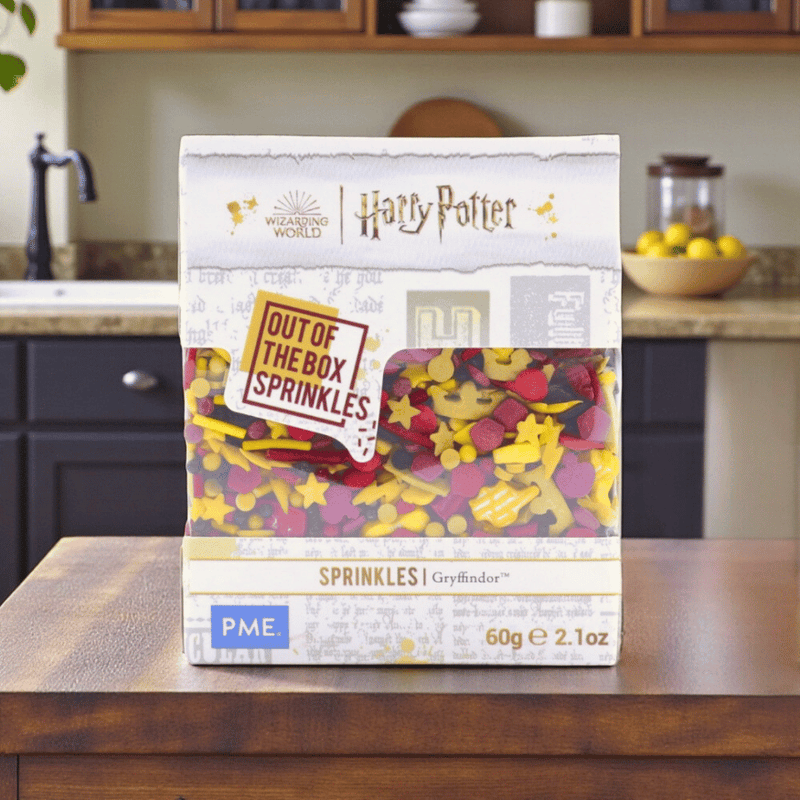 Die 60-Gramm-Mischung enthält verschieden geformte, leuchtend rote und goldene Zuckerstreusel – perfekt abgestimmt auf das Wappen von Gryffindor. Die Legende besagt, dass sie direkt aus dem Honigtopf stammen! Verpackt in einer wiederverschließbaren, leicht dosierbaren Box sind die Streusel ideal zum Verzieren, Dekorieren und Verschenken.
