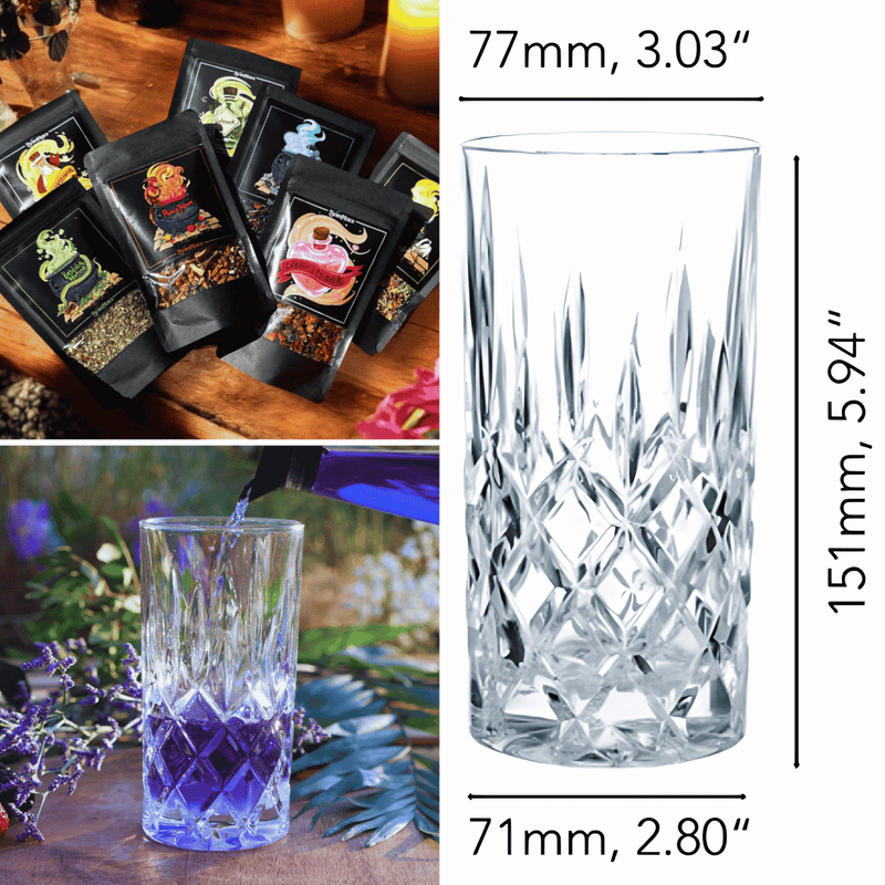 Dieses Bundle bringt zusammen, was in keiner Zauberküche fehlen darf: Sieben fantasievolle Teemischungen in Probiergröße – kombiniert mit einem edlen Kristallglas für Eistee, Zaubertränke oder deine persönliche Lieblingskreation. Ob heiß aufgegossen oder eisgekühlt serviert: Dieses Set verbindet Genuss mit Stil und macht jede Teezeremonie zu einem kleinen Alltagsritual.