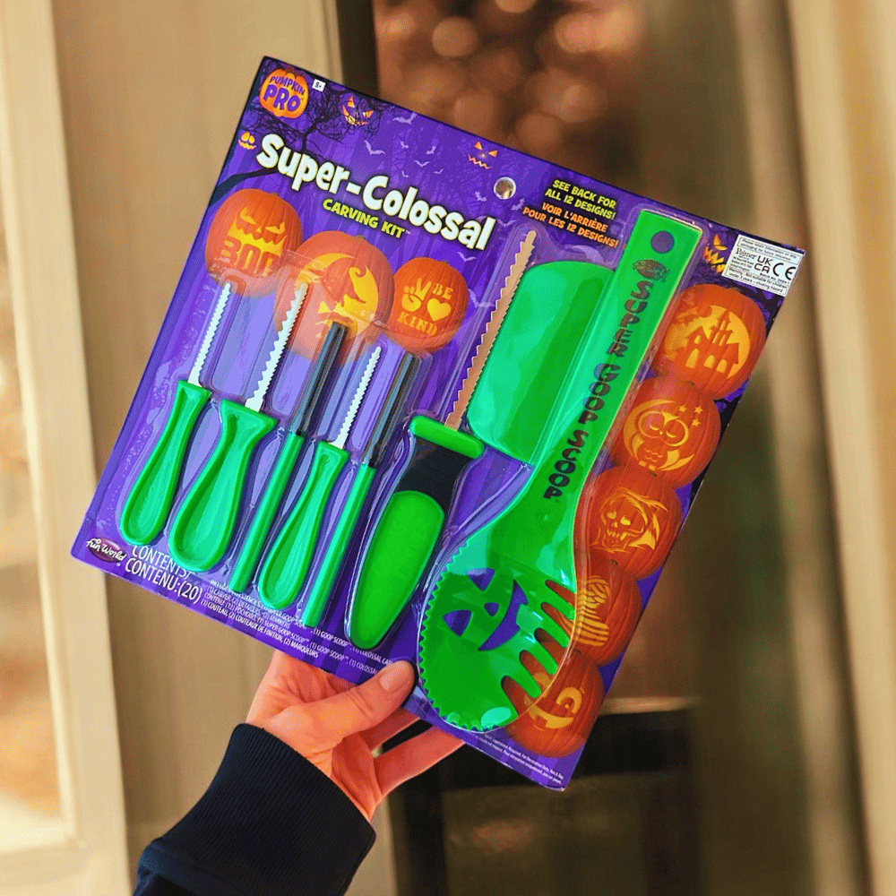 Das Set enthält alles, was du brauchst: vom Colossal Carver für große Flächen über Detail Carver für feine Linien bis hin zu Super Goop Scoop & Goop Scoop, mit denen du das Innere deines Kürbisses im Handumdrehen aushöhlst. Zwei Marker runden das Set ab, sodass du dein Design ganz einfach vorzeichnen kannst.