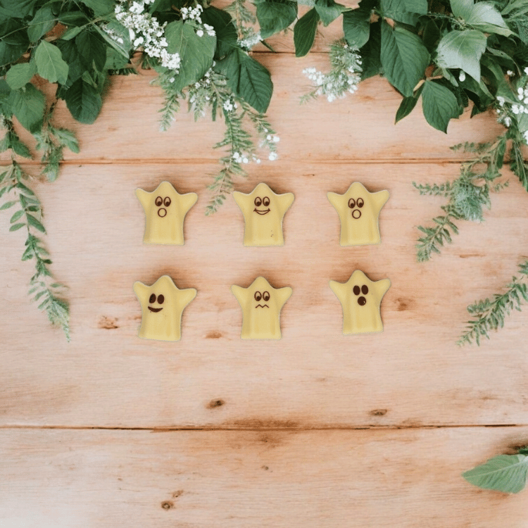 6 detailreich gestaltete Geister aus weißer Schokolade