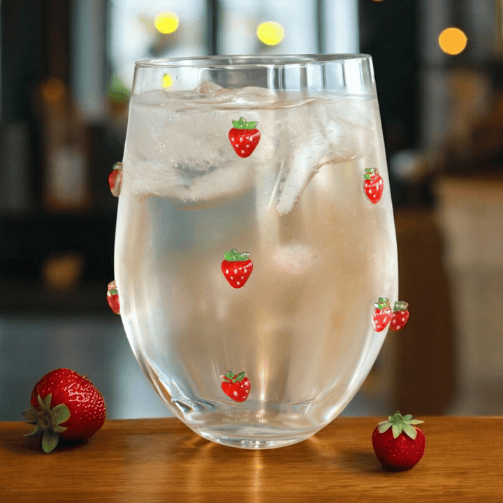 Diese zarten, gläsernen Kunstwerke sind weit mehr als gewöhnliche Trinkgefäße: Sie wirken wie aus einer anderen Welt – verziert mit winzigen, plastischen Früchten in 3D-Optik, die aussehen, als wären sie von einer Elfenbäckerei handgeformt worden.