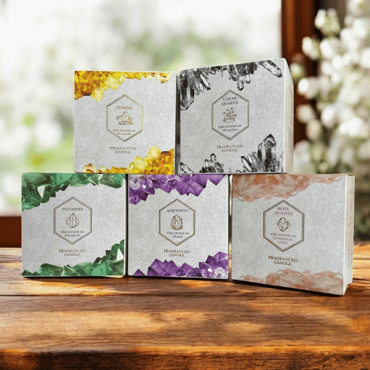 Die XL Kristallkerzen sind mehr als nur Duftkerzen – sie sind kleine Zeremonien im Alltag. Beim Schmelzen des Wachses enthüllt sich nicht nur ein sanfter Duft, sondern auch die volle Schönheit der eingebetteten Edelsteine.